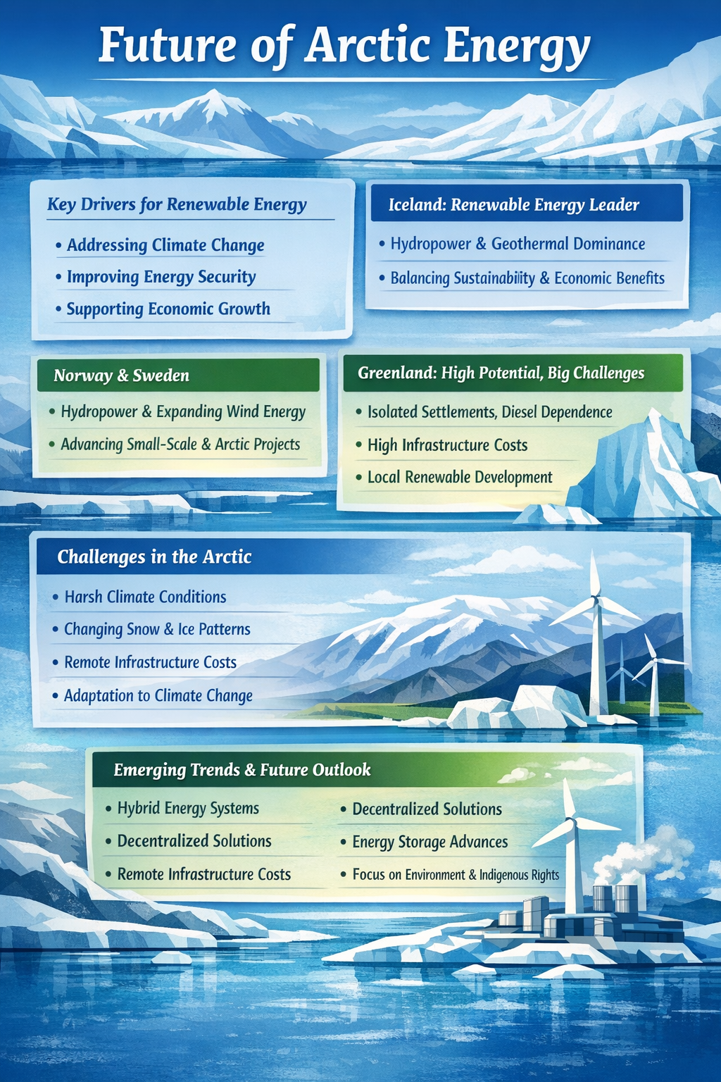 Recent developments suggest several key trends shaping the future of renewable energy in the Arctic: