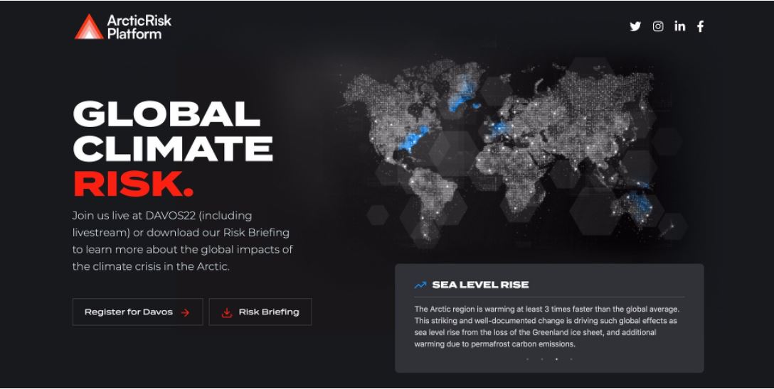 The Arctic Risk Platform was unveiled today, during a session titled “Mitigating Risks and Creating Business Solutions with Environmental Intelligence” organised by Arctic Basecamp and the University of Exeter, during the Annual Meeting of the World Economic Forum, in Davos.