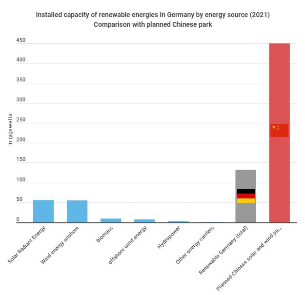 China wants to build a huge solar and wind park in the Gobi Desert, which is planned to have a total capacity of 450 gigawatts. To put this into perspective: the total capacity of all renewable energy sources in Germany is 132.3 gigawatts. The planned park in the Middle Kingdom would thus even have a higher total output than all wind energy and PV plants in the European Union combined.