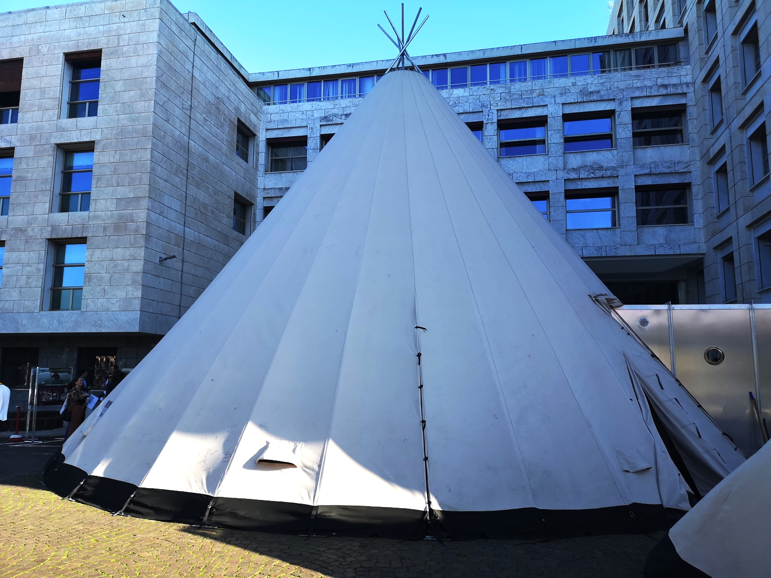 This year the Forum hosts a special guest, the Boaššu Nomad Arctic Indigenous FoodLab. A synergy between state-of-the-art technologies and design and traditional Indigenous knowledge and practices made it possible to create a unique platform that unites nomadic tent, lavvu, and modern kitchen. At the FAO venue, the FoodLab is also an Indigenous platform. Every day more than 50 Indigenous representatives from around the world gather around the fire to discuss the most pressing food-related issues among themselves and with visiting guests such as Qu Dongyu, FAO Director-General, and Zitouni Ould-Dada, Deputy Director of FAO Climate and Environment Division.