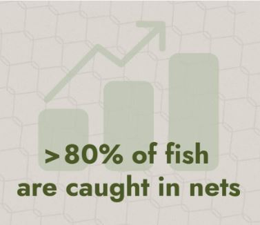 Over 80 percent of fish are caught in these kinds of nets but fish aren’t the only things caught in nets.