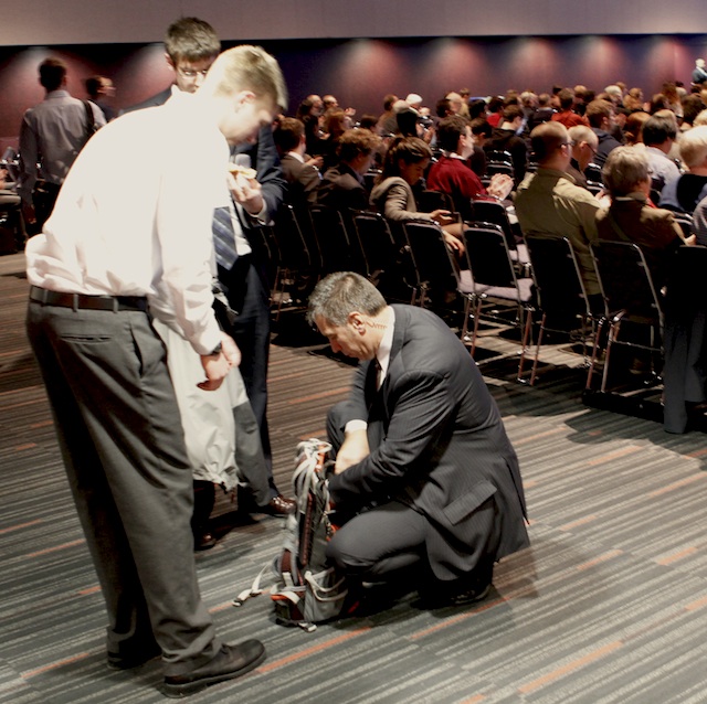 There are many security guards around the conference, searching bags and ensuring everything is safe. There were great concerns of protesters smuggling in the conference rooms to protest Jean Cherast, the Premier of Québec.