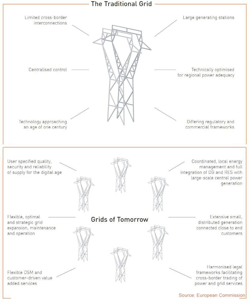 The modern industrialized nations heavily rely on two networks or grids: The first one is the internet, representing the innovations in telecommunications. The other one is the power grid, representing the demand for energy.