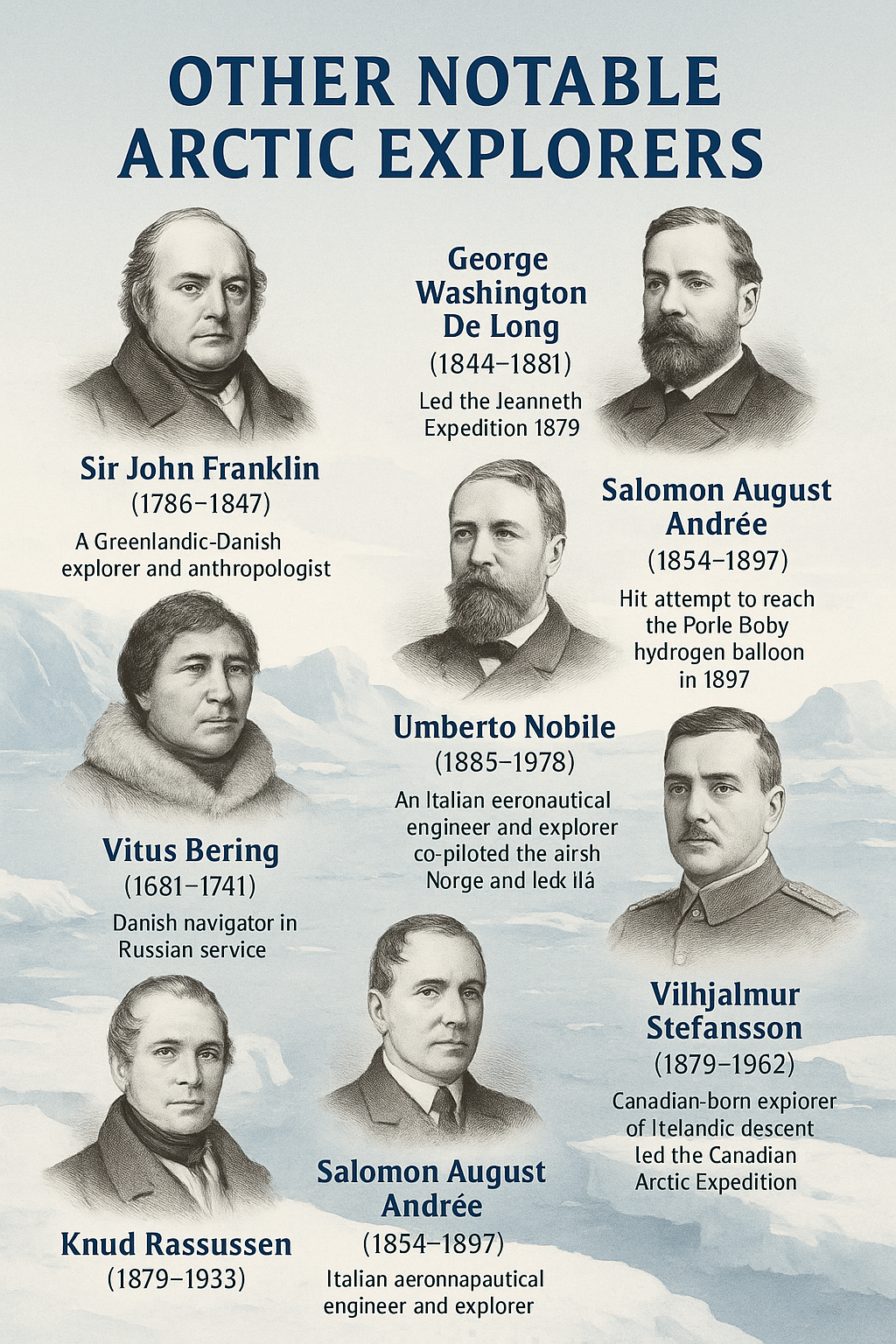 Below is a list of several key explorers whose journeys helped define the Arctic narrative: